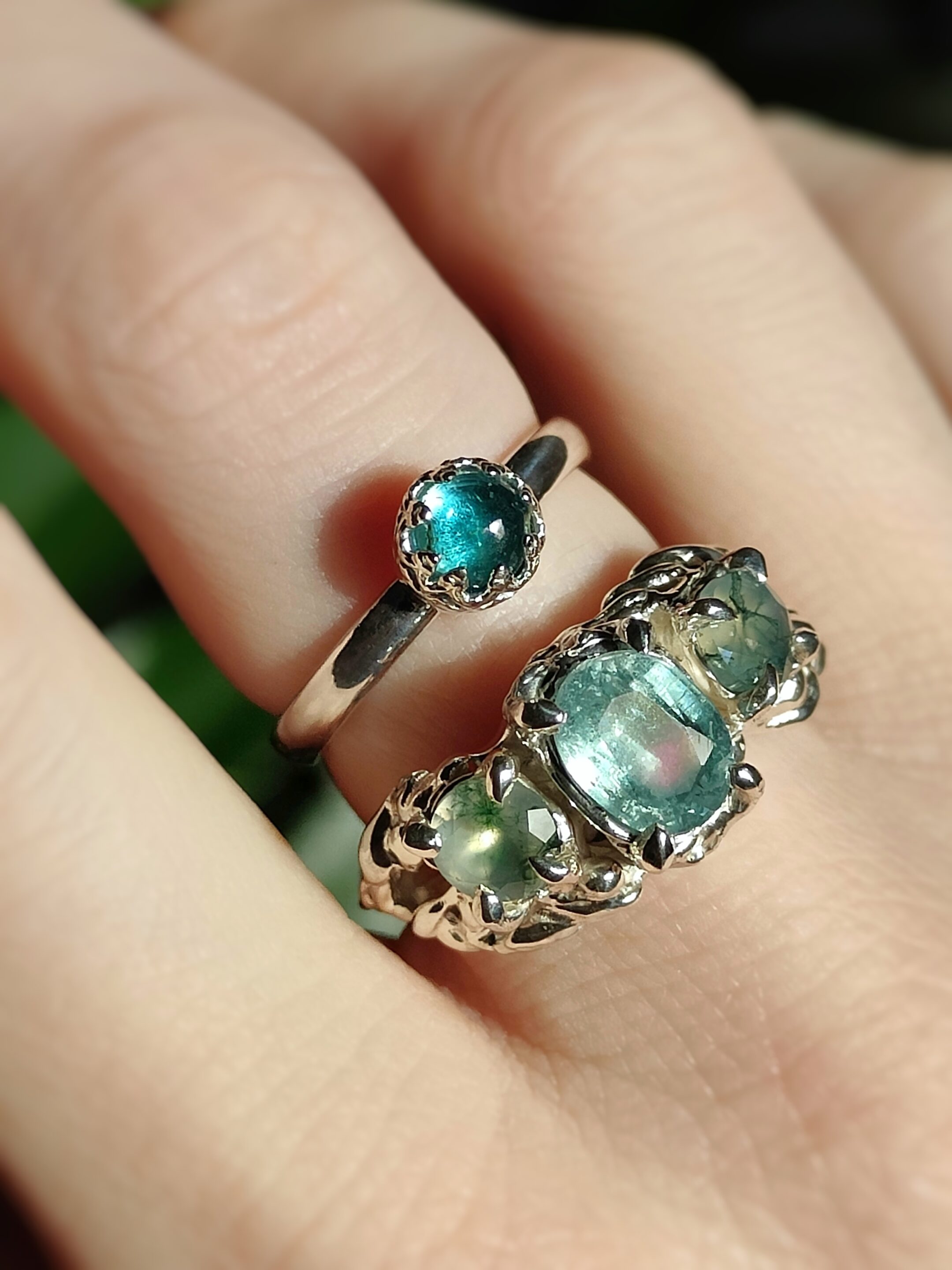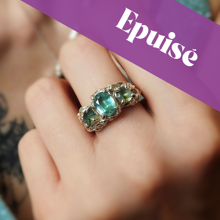 Vous pouvez facilement associer cette bague avec la bague à la tourmaline bleue, déjà disponible sur le site.