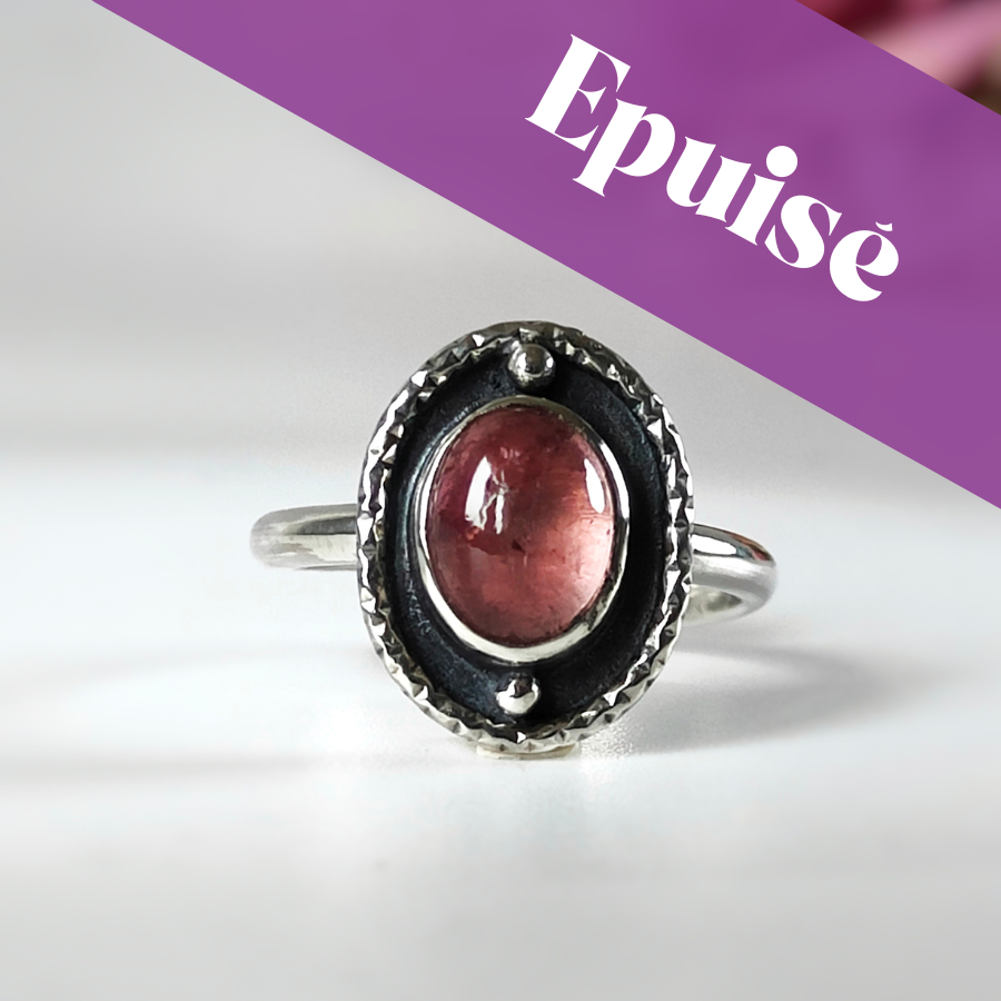 Cette bague en argent massif allie contraste et lumière grâce a sa superbe Tourmaline rose.
