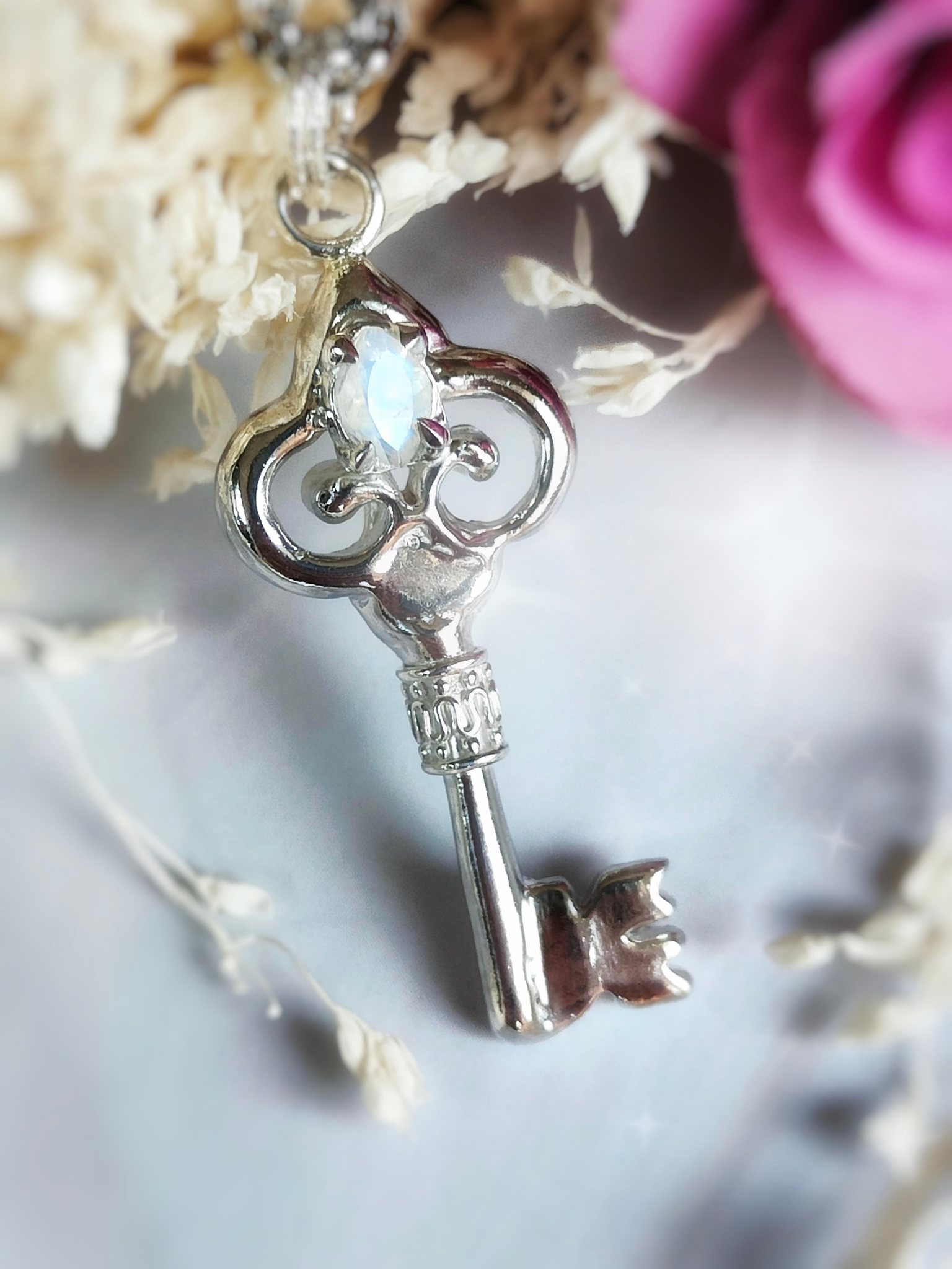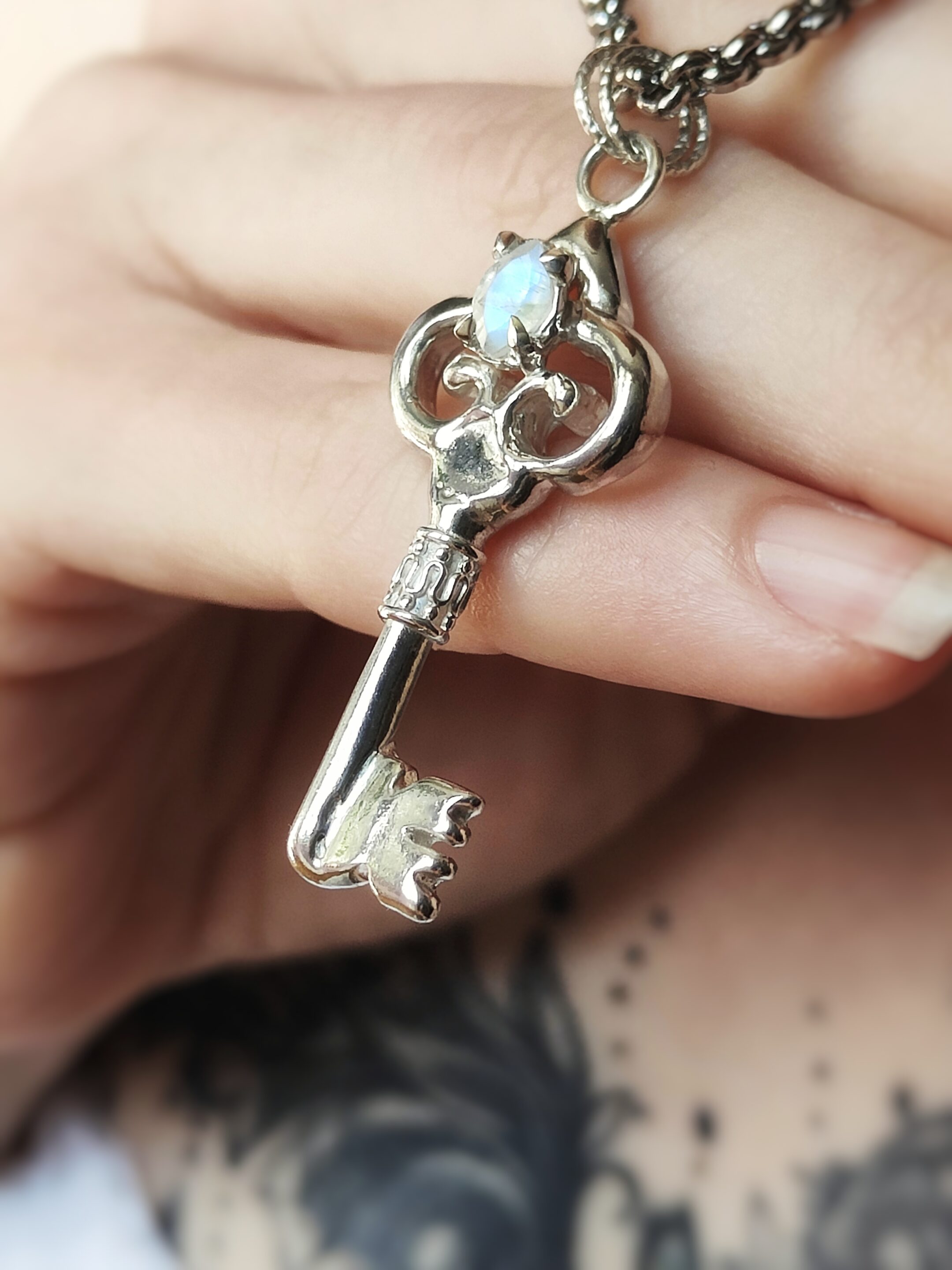 Collier Clef Résonance – Argent massif & Péristérite